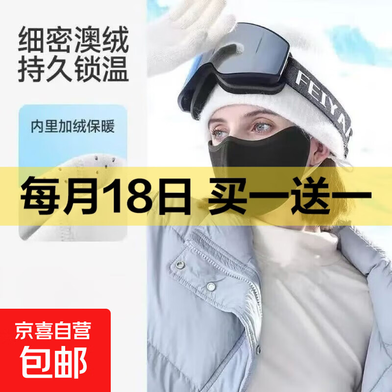 【加厚暖绒保暖】全脸防护东北抗寒防雾口罩加绒户外防风骑行面罩 黑色