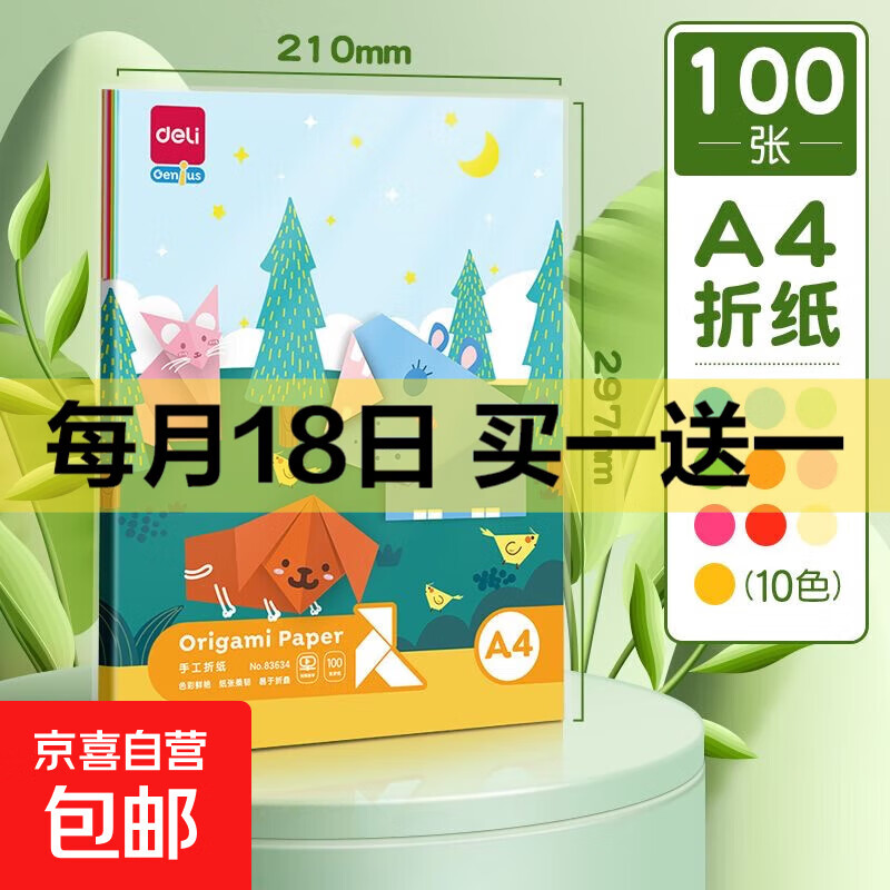 手工折纸A4彩纸儿童小学生手工课彩色折纸办公打印复印纸diy剪纸70克彩折纸 【得力】彩纸100张