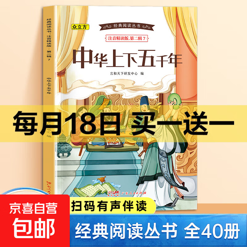 【赠品自选 备注无效】经典阅读丛书第一二三四五辑小学生课外阅读书注音精读有声伴读 第二辑:中华上下五千年 单册 无规格