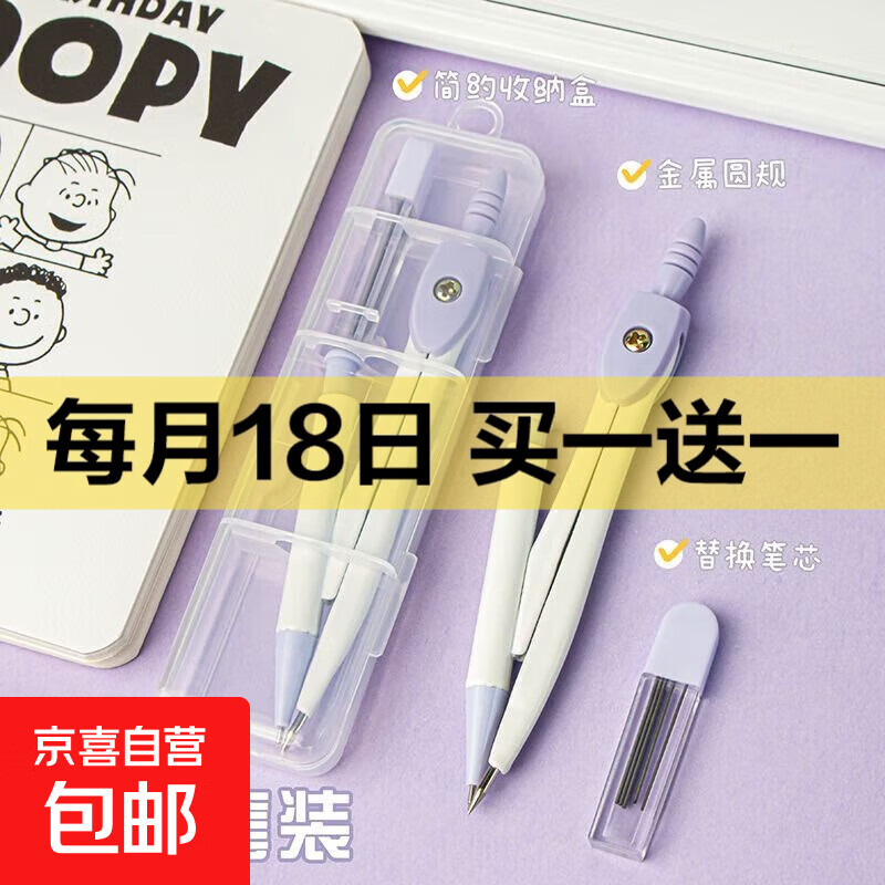 小学生金属圆规套装送替换芯学生用可爱文具小学生初中生考试专用 圆规2件套【款式随机】1盒活动价19
