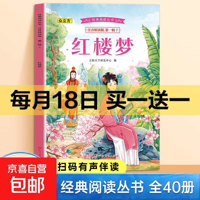 【赠品自选 备注无效】经典阅读丛书第一二三四五辑小学生课外阅读书注音精读有声伴读 第一辑:红楼梦 单册 无规格