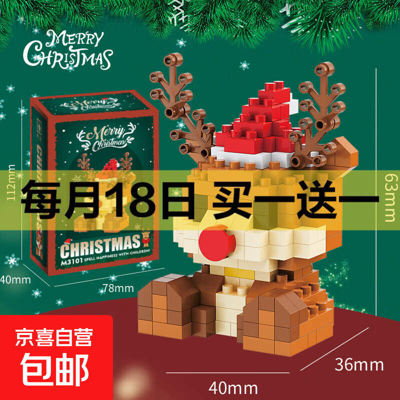 小颗粒微拼装玩具圣诞老人积木树益智兼容某高男女孩生日节日礼物 圣诞系列【麋鹿】彩盒