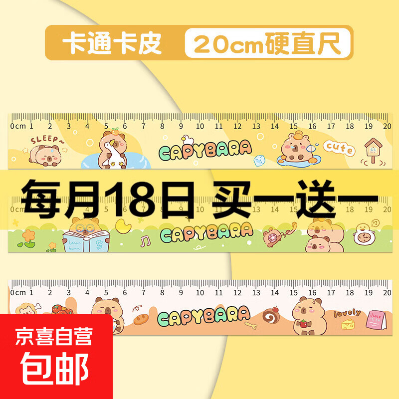 正版授权小学生初中量角器直尺三角尺套装绘图测量学习用品高颜值套尺ins 卡皮巴拉印花单尺|20cm硬直尺|款式随机
