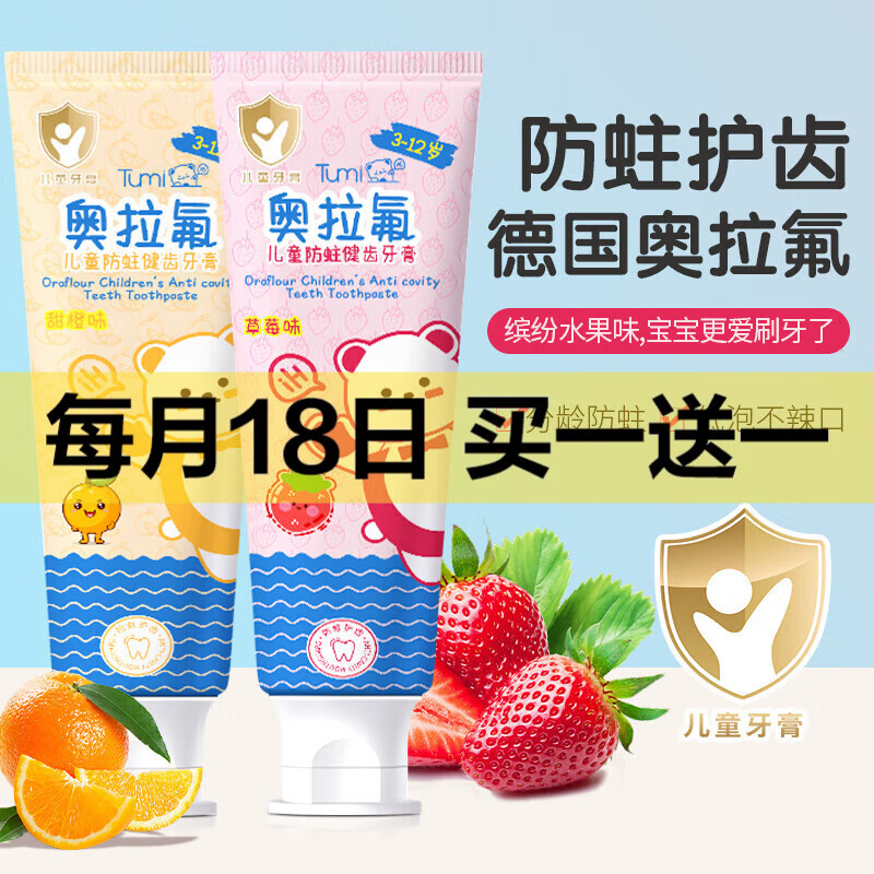 奥拉氟含氟牙膏防蛀牙健齿多香型水果冰淇淋味适合3-12岁 【草莓】60g+【蜜桃】60g