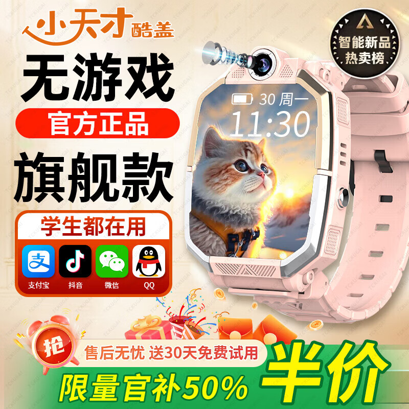 小天才酷盖儿童电话手表小学生青少年初高中生6-12岁定位通话视频可插卡防水防摔5G全网通男女孩智能电话手表 可拆卸粉色旗舰机【自由下载+电子围栏+人脸识别】