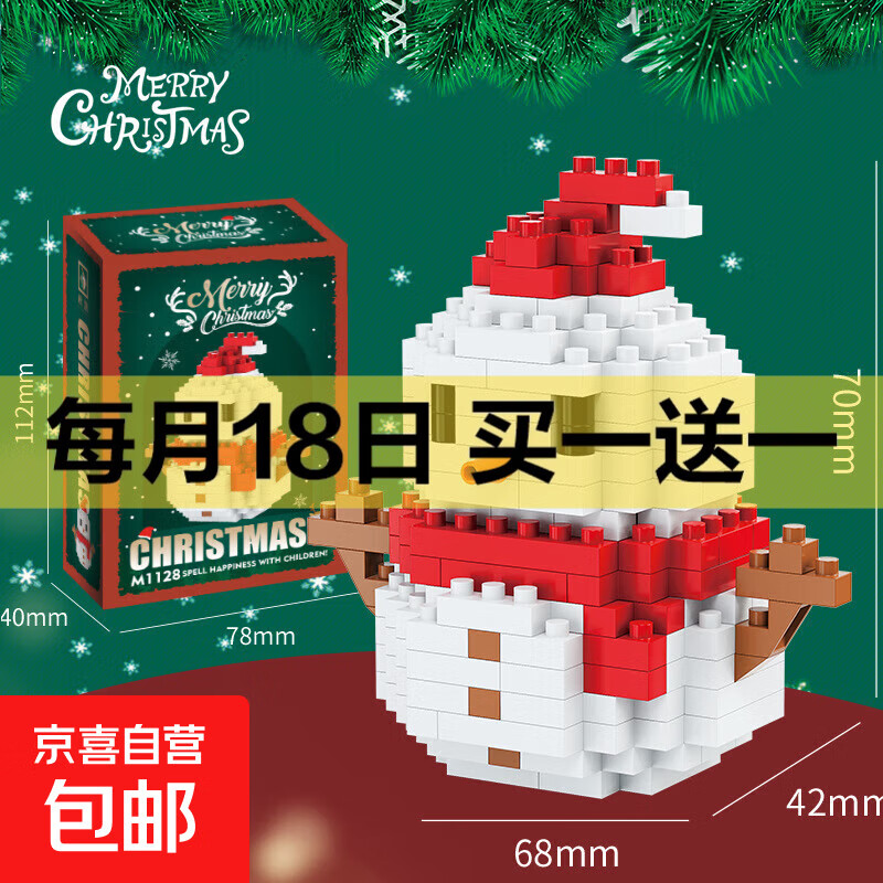 小颗粒微拼装玩具圣诞老人积木树益智兼容某高男女孩生日节日礼物 圣诞系列【红雪人】彩盒