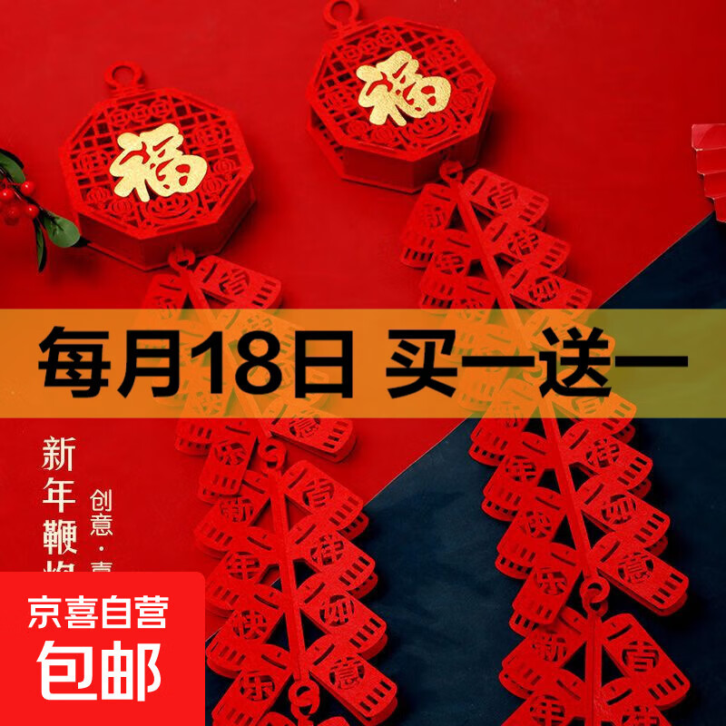 文创用品 新年福字挂件 新年春节装饰氛围布置 装饰背景墙春节玄关挂饰 文创用品 壁挂鞭炮福字【一对装】