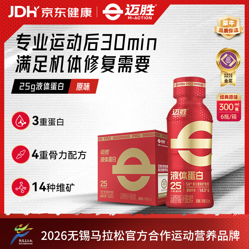 迈胜蒙牛25g液体蛋白酸樱桃液姜黄饮甜菜根液健身运动能量饮机体修复 【新客尝鲜装】25g液体蛋白PRO 300ml*6瓶