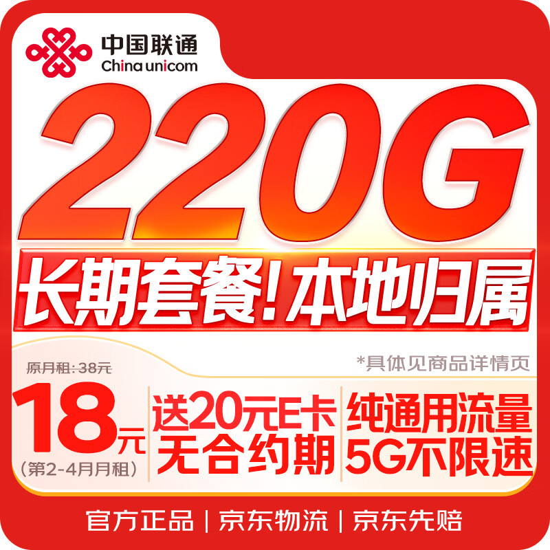中国联通流量卡19元【长期套餐】低月租全国通用5G纯上网电话卡手机卡非无限永久终身