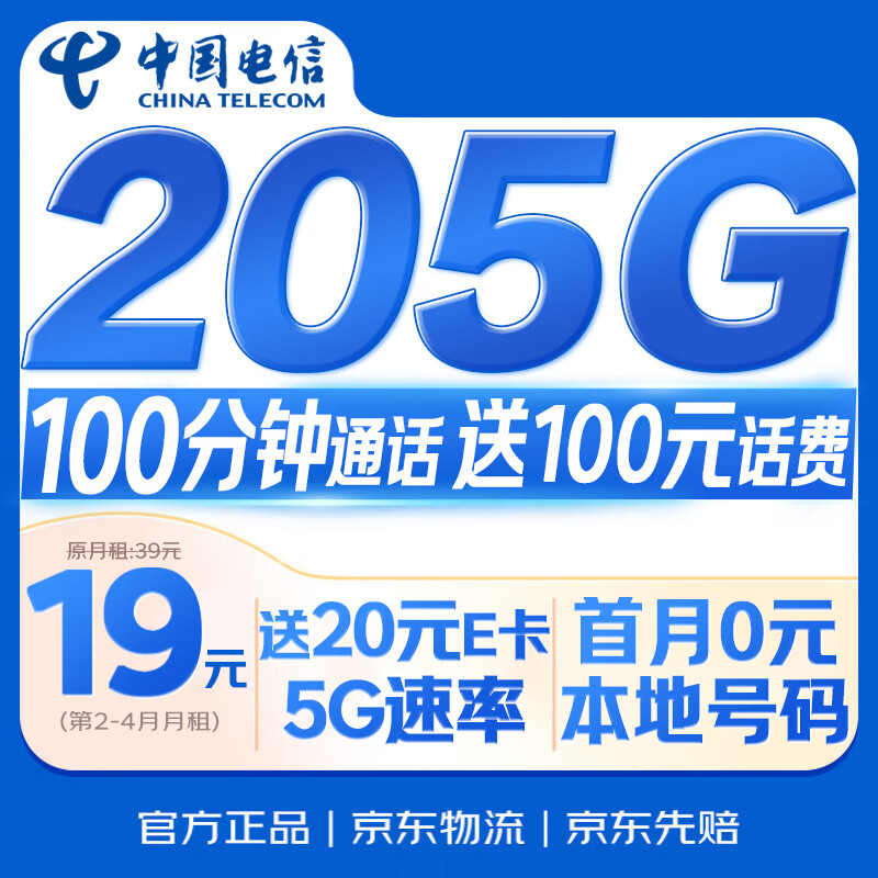 中国电信流量卡【205G+100分钟】19元大全国通用移动手机电话卡长期星非终身无限永久