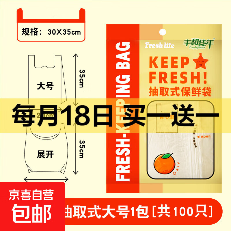 抽取式保鲜袋食品袋背心式食品级家用冰箱专用冷冻一次性塑料袋子 大号30*35cm 100只