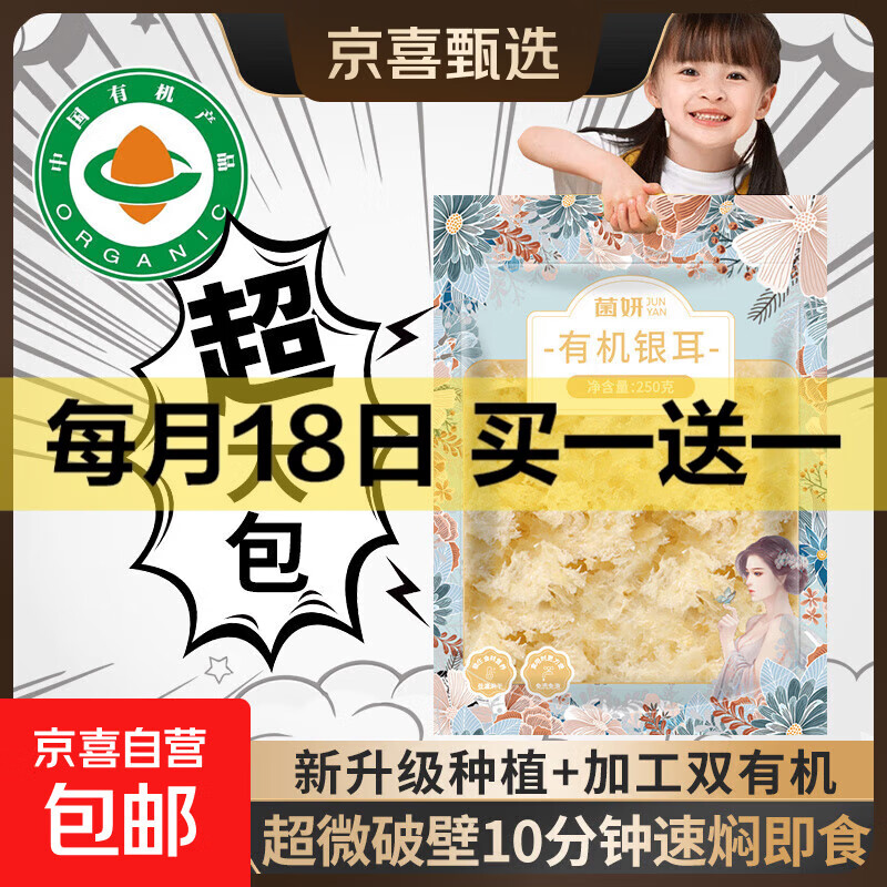 【限时特惠】菌妍双有机本草银耳免洗古田干货冻干银耳羹冲泡即食 【超超划算】10分钟出胶250克*1袋