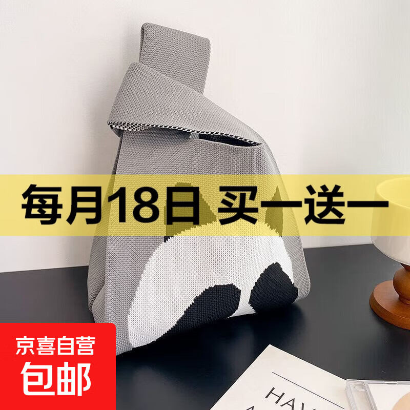 熊猫针织包韩版小众设计可爱单肩手拎包学生通勤休闲百搭托特包女 捂脸熊猫灰色 28cm高*16cm宽