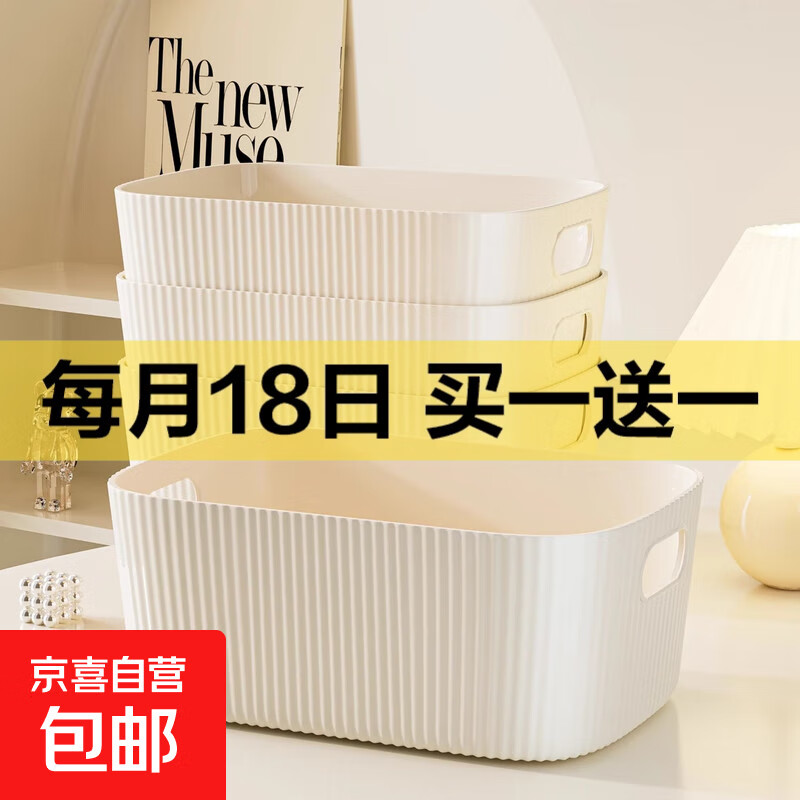 桌面收纳盒化妆品杂物零食玩具整理篮长方形储物筐置物盒收纳箱子 波浪长条收纳盒-白色-20.5*14*7.3 1个