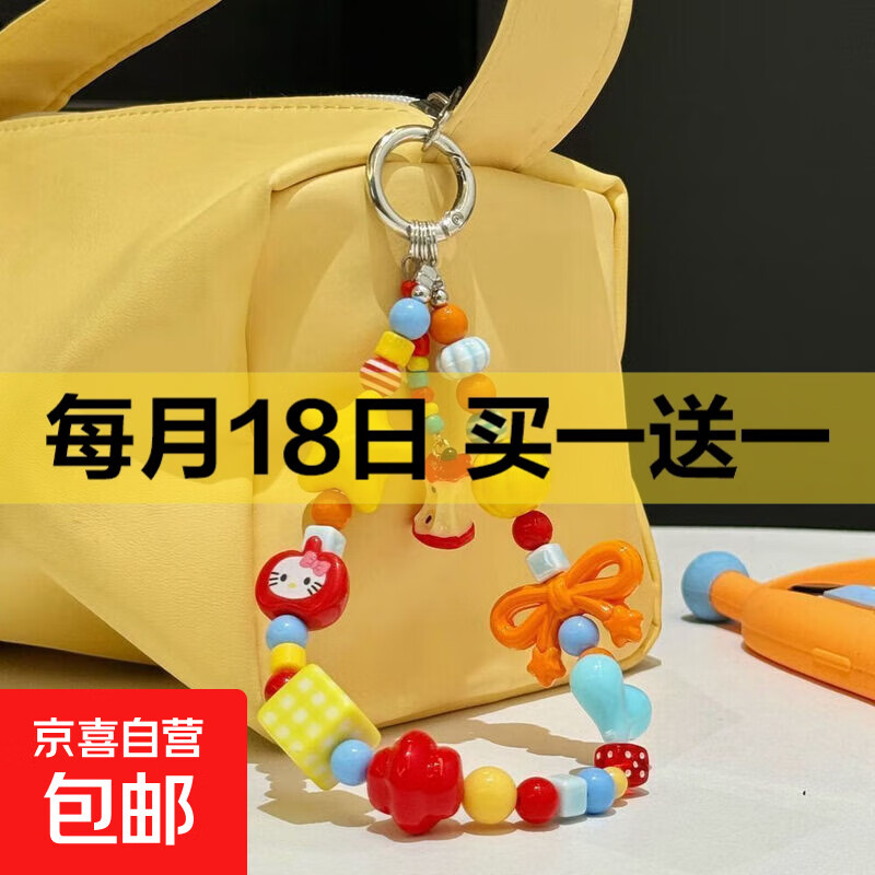 2025年新款手机挂件多巴胺樱花爱心ins彩色挂饰手工可爱串珠手机链女ccd挂绳相机挂件防丢钥匙挂扣 多巴胺苹果核手机挂件SJ-015