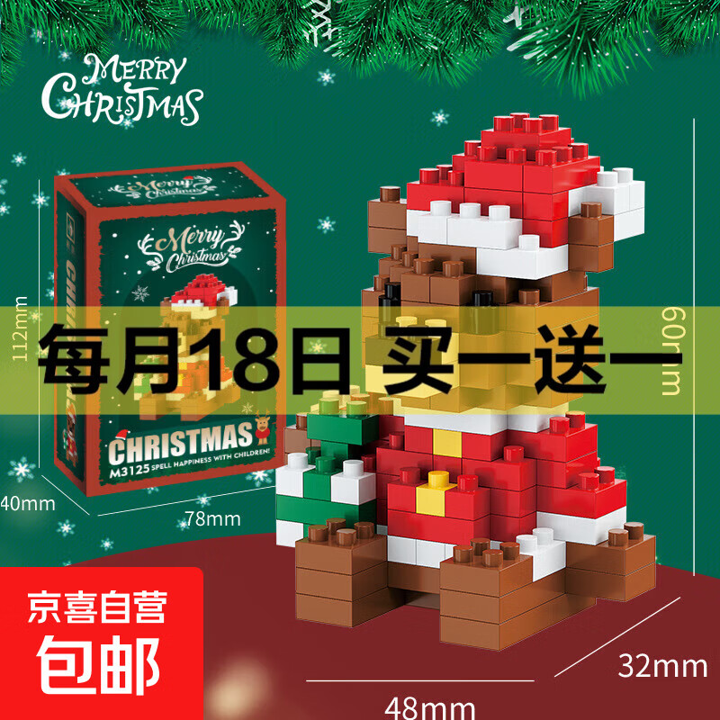 小颗粒微拼装玩具圣诞老人积木树益智兼容某高男女孩生日节日礼物 圣诞系列【圣诞熊】彩盒