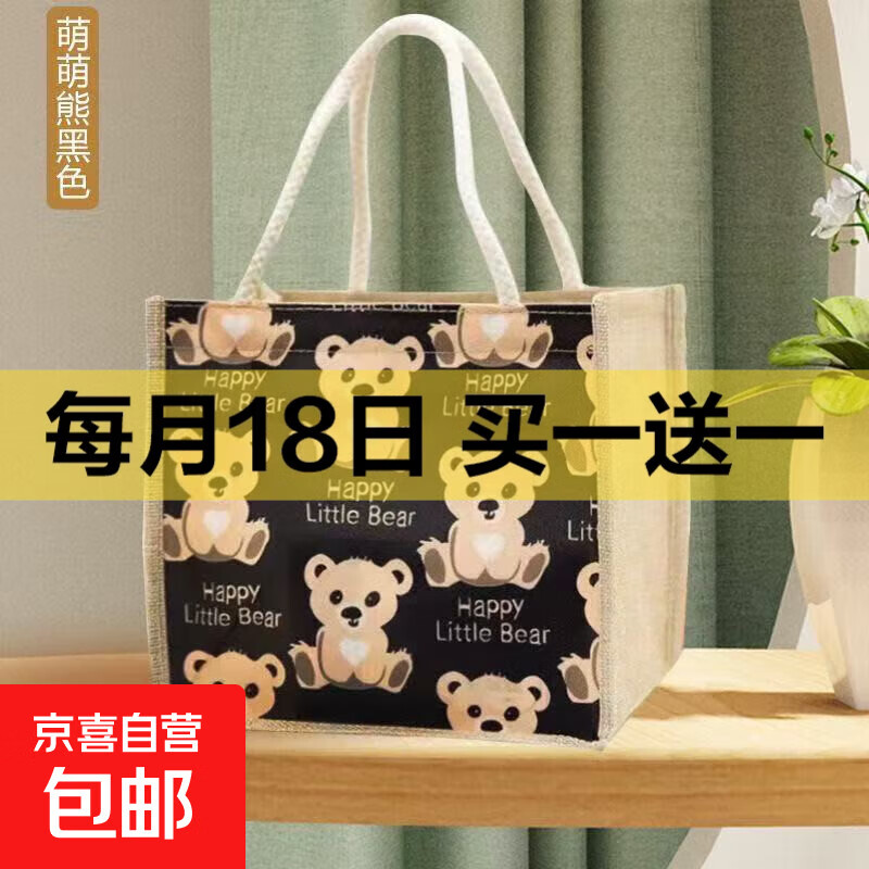 2025网红ins日系拎包便当包学生小清新单肩亚麻手提袋帆布包小袋 深棕色