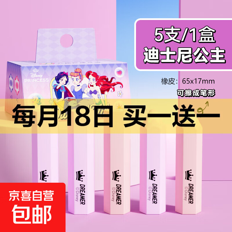 迪士尼真集屑铅笔橡皮擦无屑超干净不留痕小学生专用卡通可爱幼儿园儿童无毒2b考试可削笔形像皮檫 5块/盒【迪士尼公主】