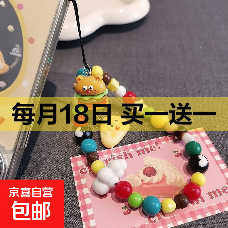 2025年新款手机挂件多巴胺樱花爱心ins彩色挂饰手工可爱串珠手机链女ccd挂绳相机挂件防丢钥匙挂扣 多彩汉堡手机挂件SJ-006