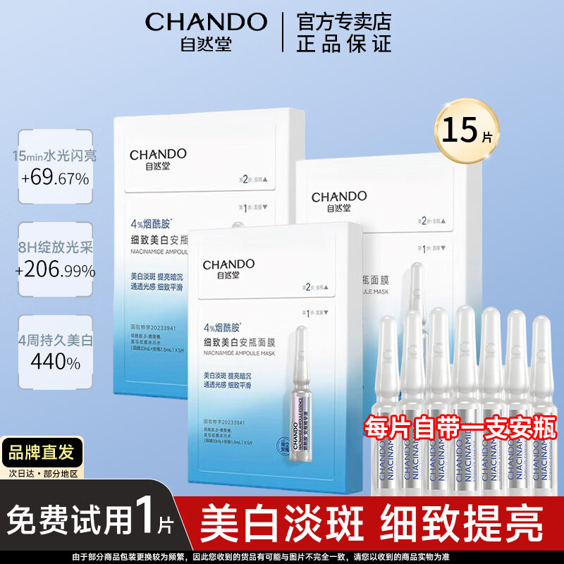 自然堂(CHANDO)安瓶面膜 烟酰胺补水保湿美白弹嫩细致舒缓肌肤面膜套装护肤品女 安瓶面膜15片