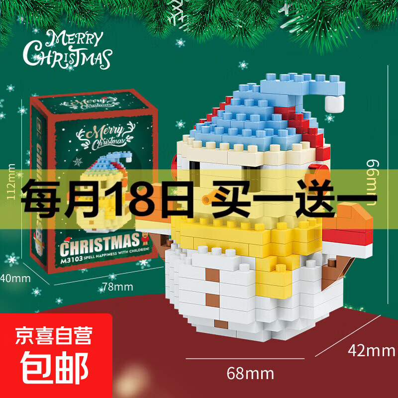 小颗粒微拼装玩具圣诞老人积木树益智兼容某高男女孩生日节日礼物 圣诞系列【蓝帽雪人】彩盒