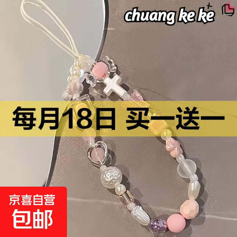 2025年新款手机挂件多巴胺樱花爱心ins彩色挂饰手工可爱串珠手机链女ccd挂绳相机挂件防丢钥匙挂扣 粉色樱花爱心手机挂件SJ-049