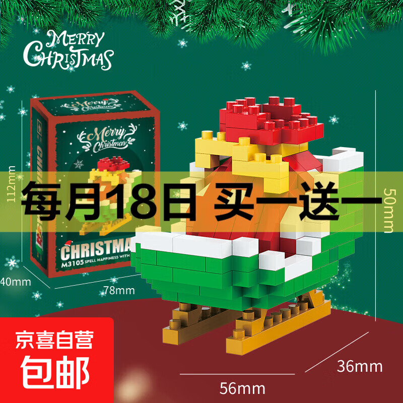 小颗粒微拼装玩具圣诞老人积木树益智兼容某高男女孩生日节日礼物 圣诞系列【雪橇】彩盒