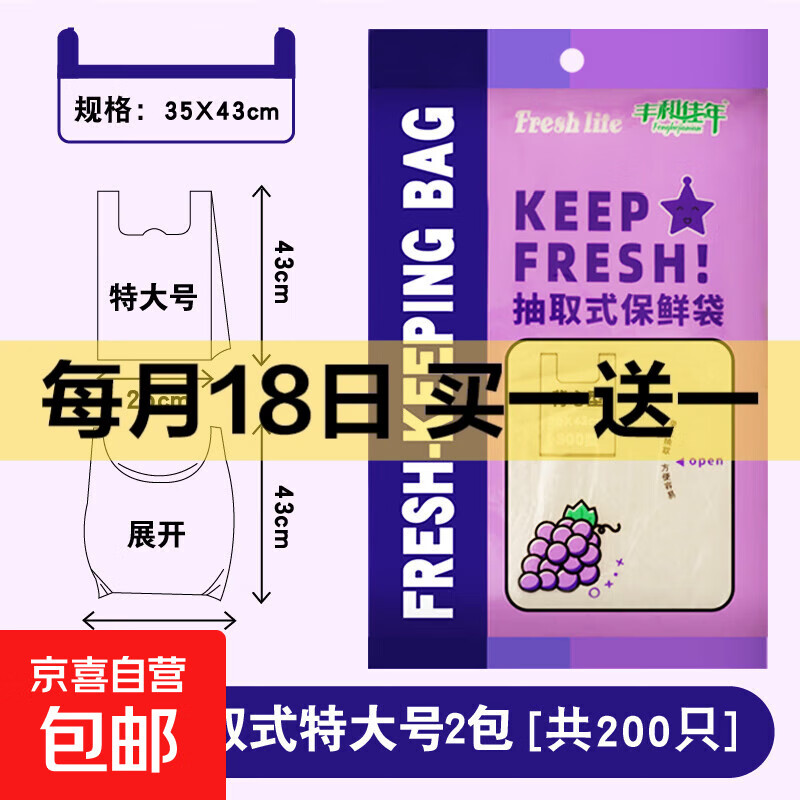 抽取式保鲜袋食品袋背心式食品级家用冰箱专用冷冻一次性塑料袋子 特大号35*43cm 200只
