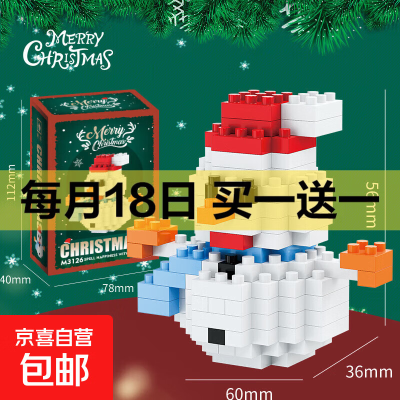 小颗粒微拼装玩具圣诞老人积木树益智兼容某高男女孩生日节日礼物 圣诞系列【红帽蓝围巾雪人】彩盒