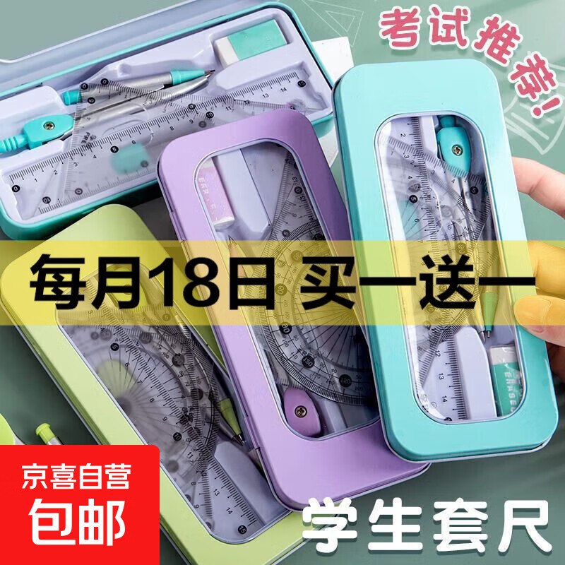 学生圆规直尺三角尺多功能尺高中生初中生小学生套装绘图三角尺文具尺子量角器圆规套装 紫色开窗款-1个装 无规格
