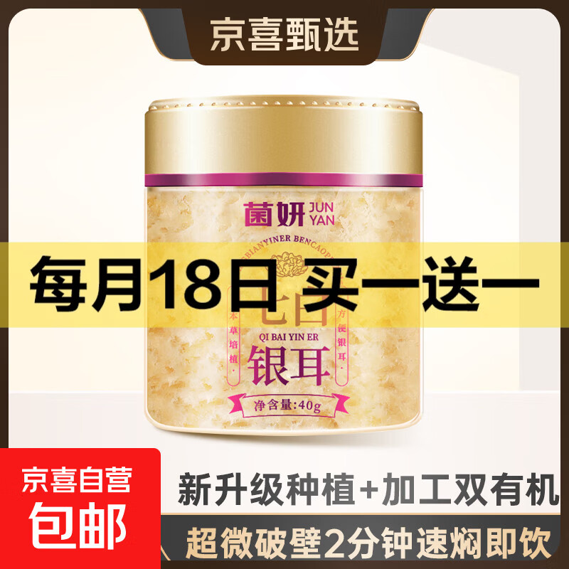 【限时特惠】菌妍双有机本草银耳免洗古田干货冻干银耳羹冲泡即食 【七白银耳】2分钟出胶40克*1罐