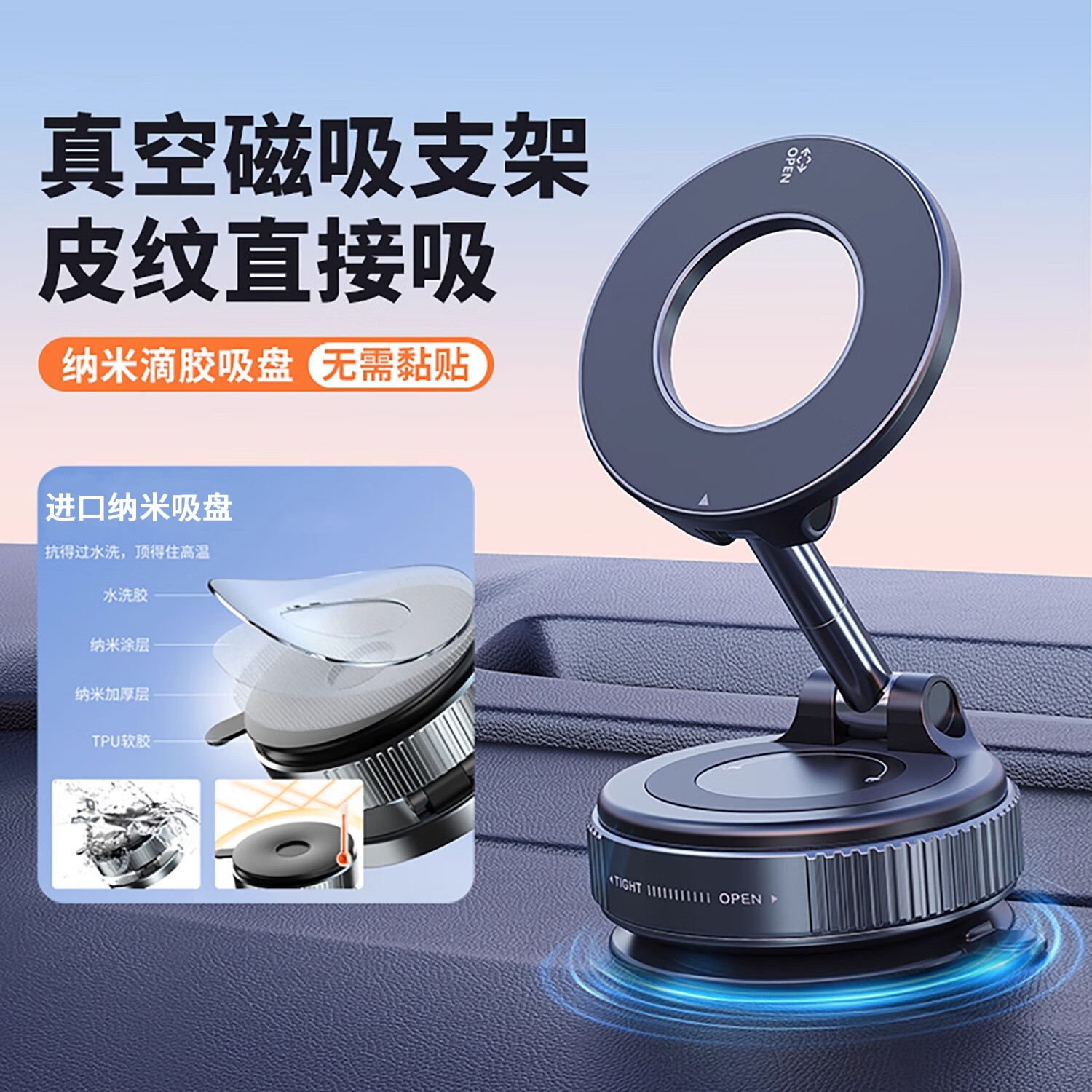 齐选车载通用磁吸手机支架新款中控台吸盘式汽车导航专用真空吸附防抖 【曜石黑】真空仿生吸附-N52强磁