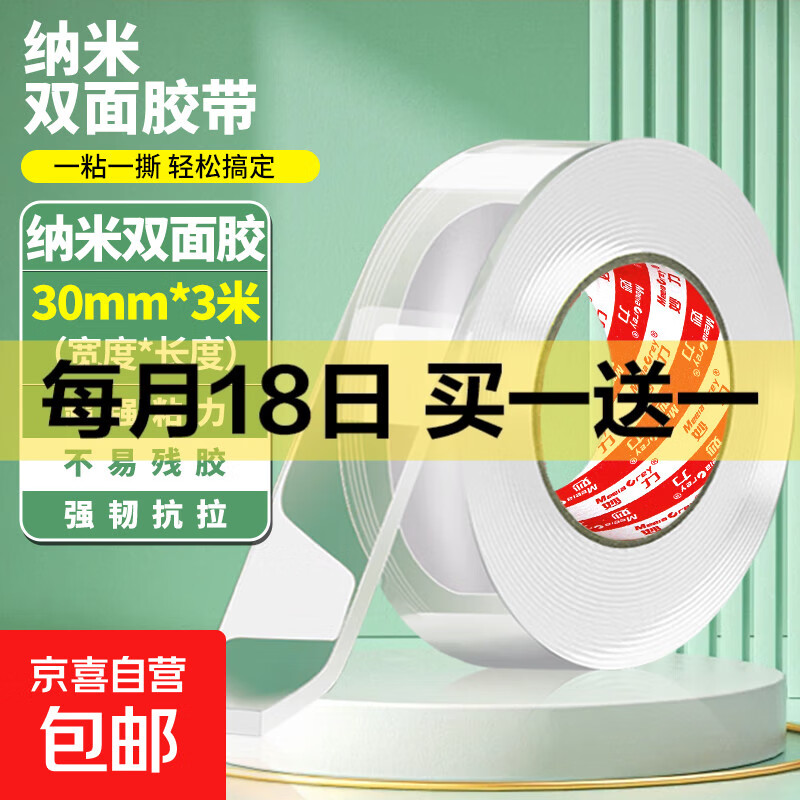 纳米双面胶带 高透明高粘性不易残胶 手工diy加固物品适用 透明纳米-宽30mm*3米(强粘)