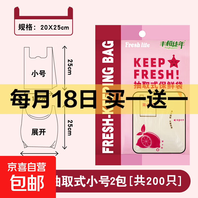 抽取式保鲜袋食品袋背心式食品级家用冰箱专用冷冻一次性塑料袋子 小号20*25cm 200只