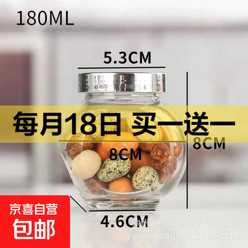 食品级茶叶储储物罐调料罐防潮玻璃密封罐咸菜蜂蜜瓶家用糖果罐 180ml 1个