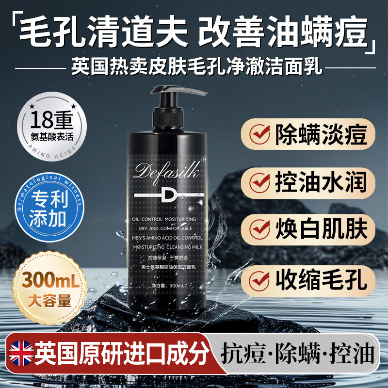 DEFASILK英国进口原料祛痘除螨虫氨基酸洗面奶控油男士深层去黑头收缩毛孔 一瓶体验装【 横扫油痘螨 】