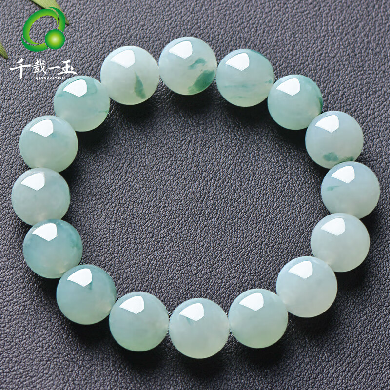 千载一玉翡翠玉手链 男女士光泽感玉石手串寓意圆满平安常伴 亲朋好友礼物 QZD2731i约12毫米