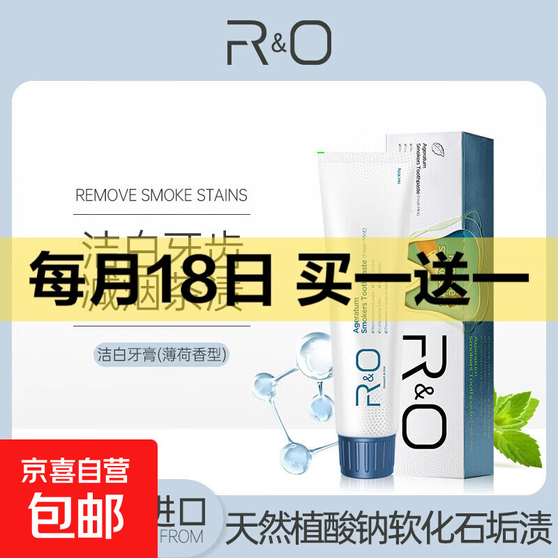 美国进口洁白牙膏祛除烟渍茶渍牙齿亮白清新口气 R&O洁白洁白薄荷牙膏一支到手100g
