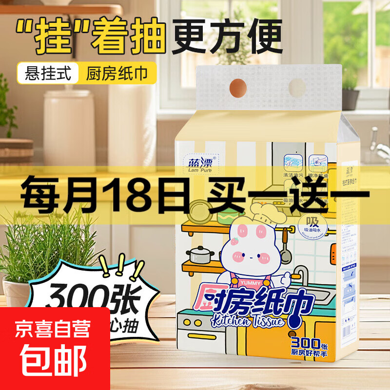 蓝漂萌宠系列厨房纸巾厨房抽纸壁挂式厨房用纸吸水吸油纸 2层 300张*1提