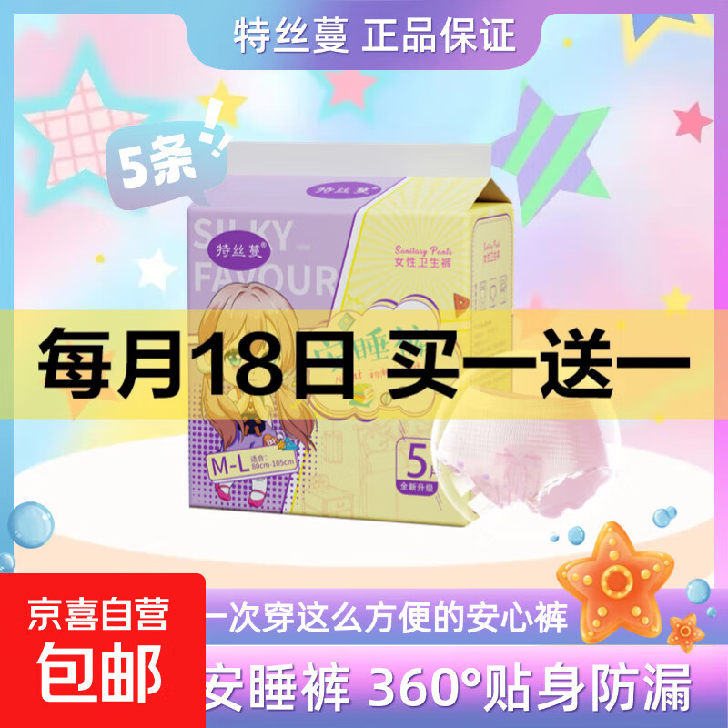 【商超热卖】超薄安心裤安睡少女初潮可爱亲肤防侧漏绵柔透气夜用 M-L码 5条 80-140斤 安心裤1包