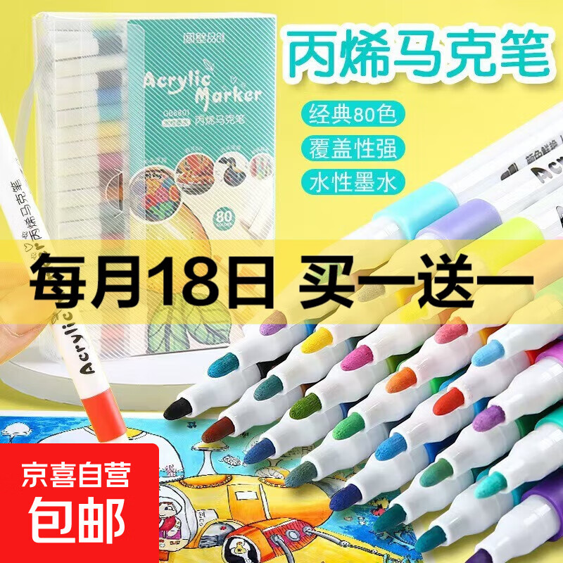 绘画工具丙烯马克笔水性速干棉芯陶瓷绘画防水颜料美术水彩笔 彩色马克笔24色