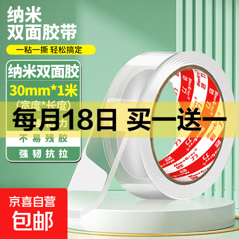 纳米双面胶带 高透明高粘性不易残胶 手工diy加固物品适用 透明纳米-宽30mm*1米(强粘)