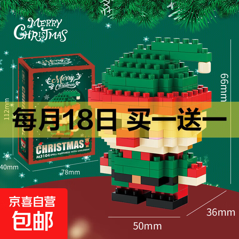 小颗粒微拼装玩具圣诞老人积木树益智兼容某高男女孩生日节日礼物 圣诞系列【圣诞精灵】彩盒