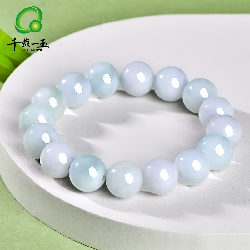千载一玉翡翠玉手链 男女士光泽感玉石手串寓意圆满平安常伴 亲朋好友礼物 淡绿款QZD0909i