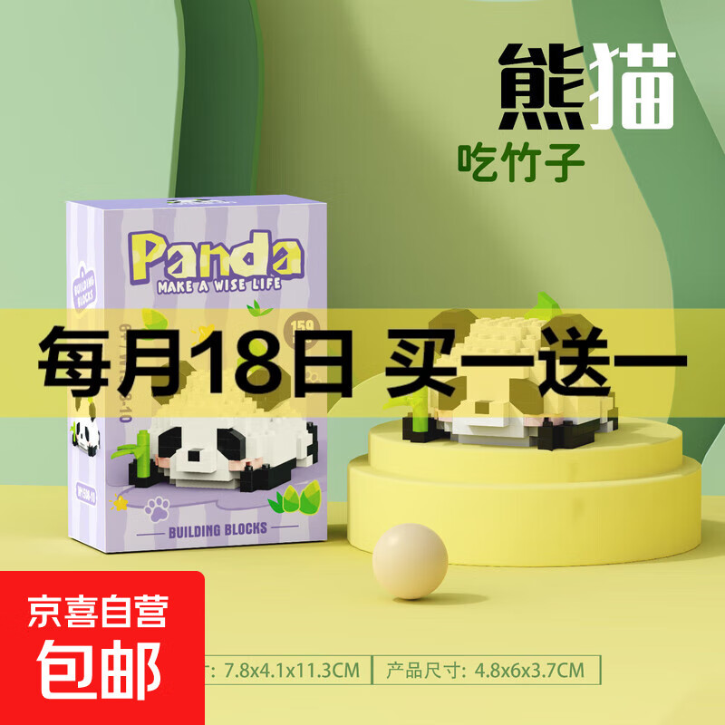 兼容积木中国大熊猫积木花花萌兰益智拼装儿童生日礼物玩具 W1508-10吃竹子159pcs