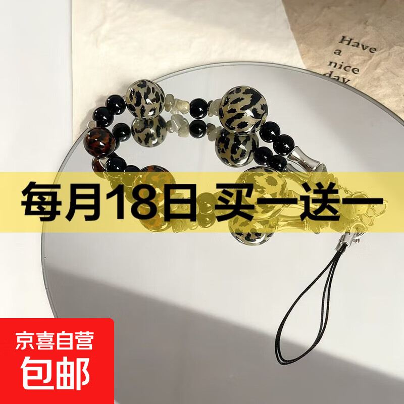 2025年新款手机挂件多巴胺樱花爱心ins彩色挂饰手工可爱串珠手机链女ccd挂绳相机挂件防丢钥匙挂扣 豹纹手机挂件SJ-041