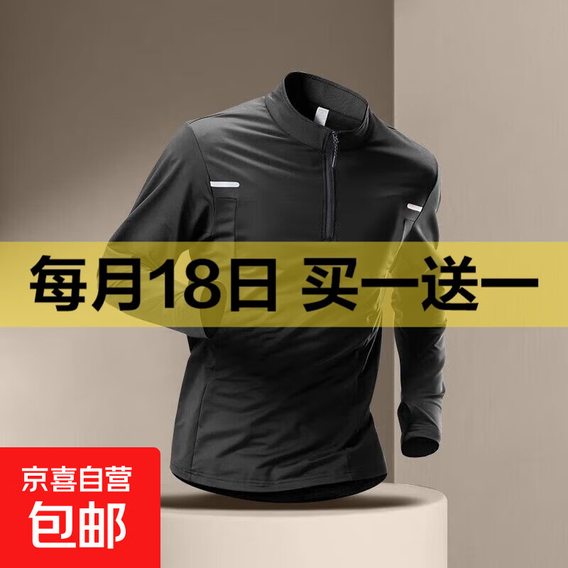 冬季运动t恤男士加绒保暖半拉链长袖T速干衣打底训练服健身跑步服 T26黑【常规款-速干】单件 5XL 【建议175-200斤】