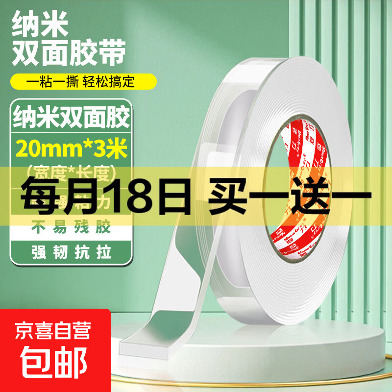 纳米双面胶带 高透明高粘性不易残胶 手工diy加固物品适用 透明纳米-宽20mm*3米(强粘)