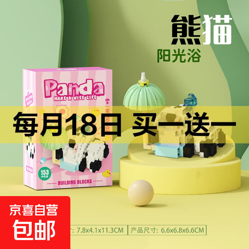 兼容积木中国大熊猫积木花花萌兰益智拼装儿童生日礼物玩具 W1508-02阳光浴153pcs