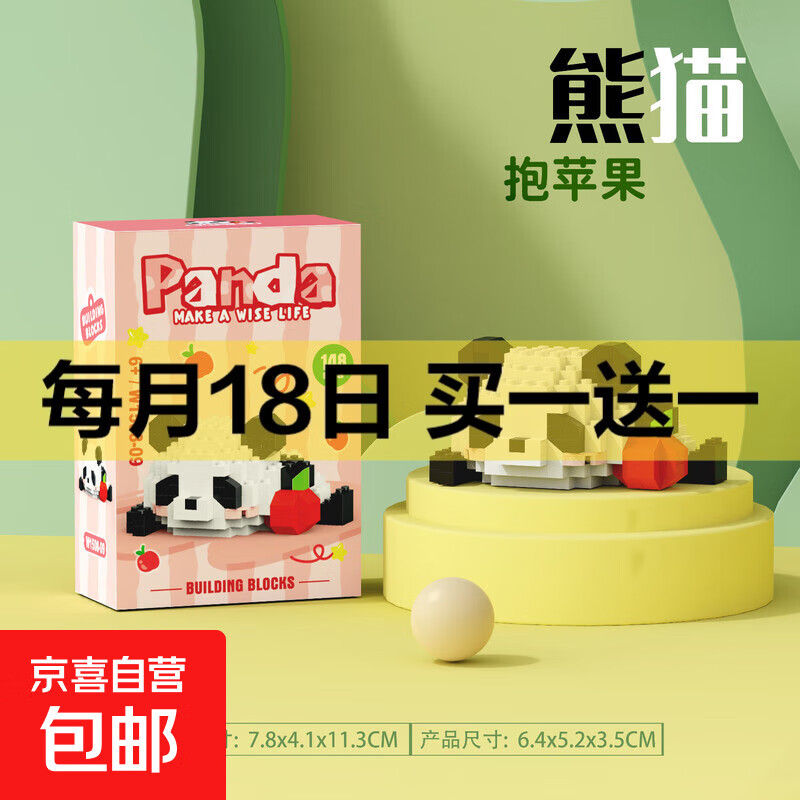 兼容积木中国大熊猫积木花花萌兰益智拼装儿童生日礼物玩具 W1508-09抱苹果148pcs